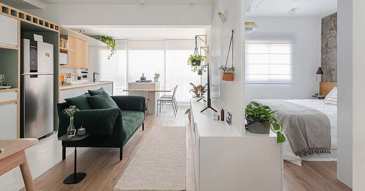 • Перегородки: Использование гипсокартонных перегородок, стеклянных блоков или раздвижных дверей позволяет создать четкое разделение между спальной и гостиной зонами.