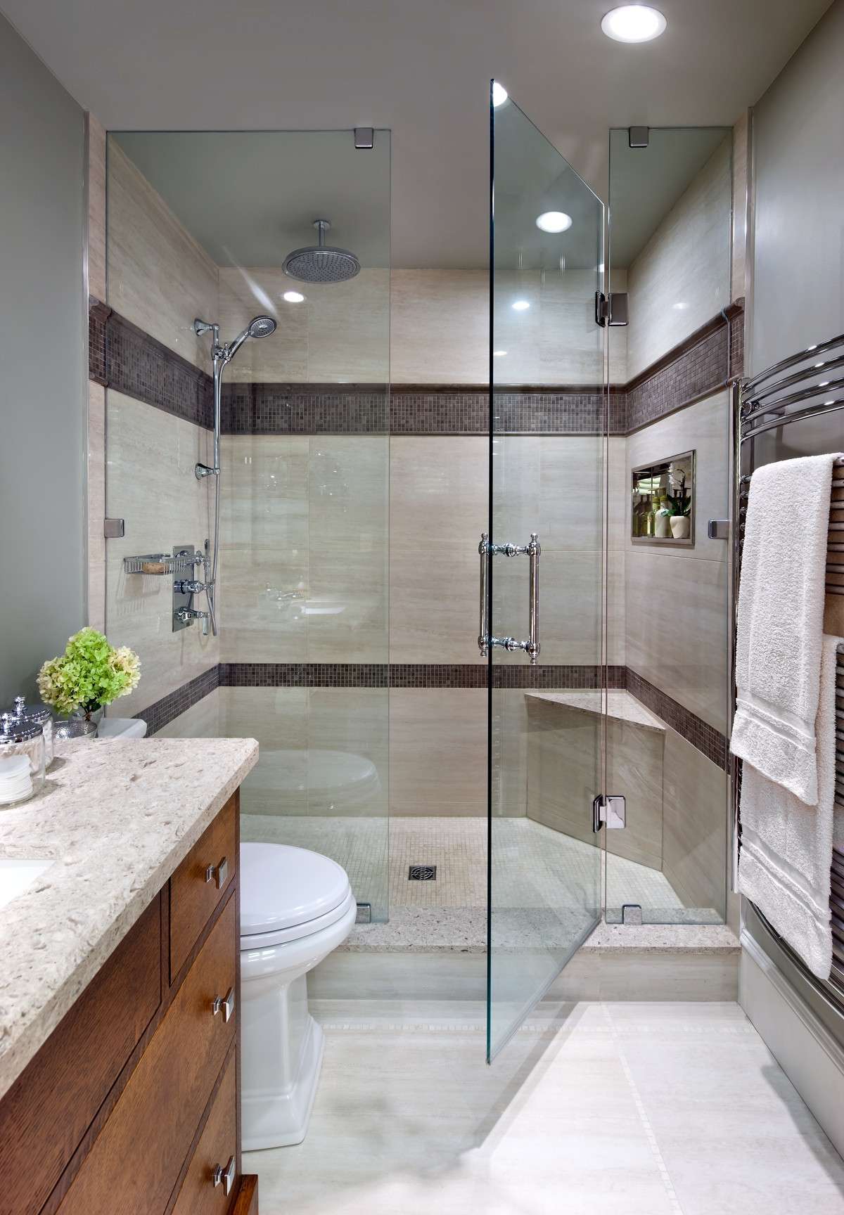 Выбор материалов играет ключевую роль в создании стильного и функционального интерьера. Для отделки стен и пола можно использовать керамическую плитку, керамогранит, мозаику или натуральный камень. Важно, чтобы материалы были влагостойкими и легко чистились.