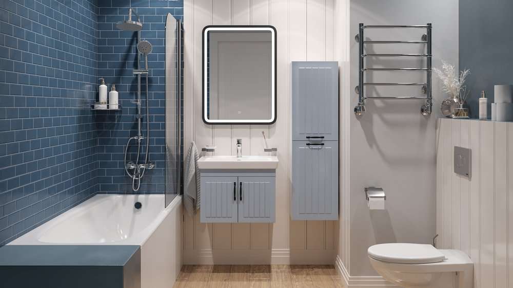Дизайн голубого туалета совмещенного с ванной: идеи и решения