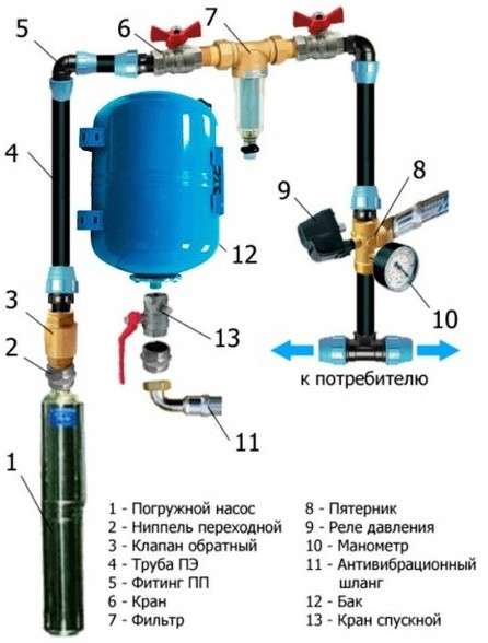 - Обратный клапан: Для предотвращения обратного потока воды.